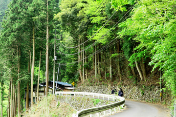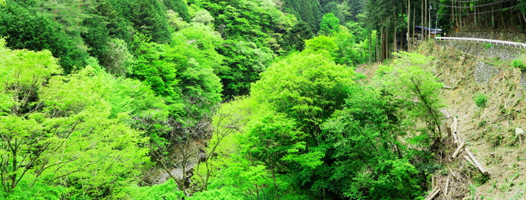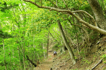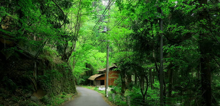 薄暗い山腹の道を歩いて行くと・・・突然、緑の炎が燃え盛るような新緑でした。もしかしたらトトロが居るのではないかと思えるような春の息吹です。