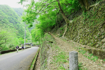 都心から直線距離で約60㎞、電車で2時間ほどの所に。こんなにも自然豊で歴史を感じる道が残っているとは驚きでした。それも都民の水を育む鬱蒼とした森に覆われ、その先が69年間都民の暮らし、命を繋いで来た小河内ダム・奥多摩湖に繋がっているという、偶然にしては出来すぎのロケーションの道でした。