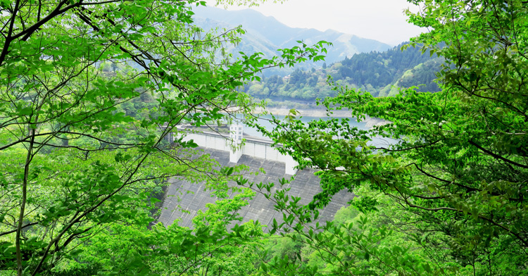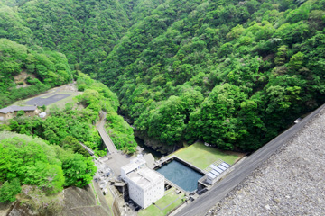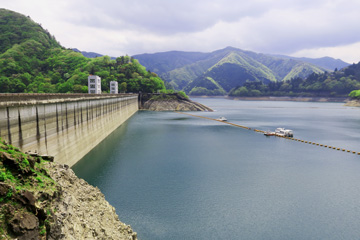 堤高149m、堤頂長353mのダムで、貯水量は1億8910万立方mで、200Lのドラム缶では9億4550万本、東京ドーム(約124万立方m)でいえば152杯分です。これは東京都の水源の20%に相当します。